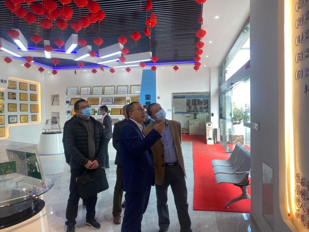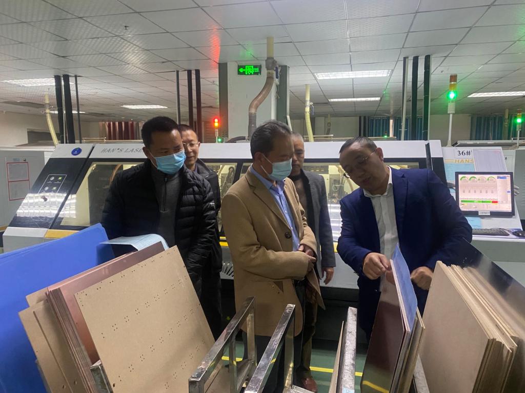 张生一行深入车间,了解企业生产状况,并对在英创力公司工作的毕业生所取得的成绩表示祝贺。