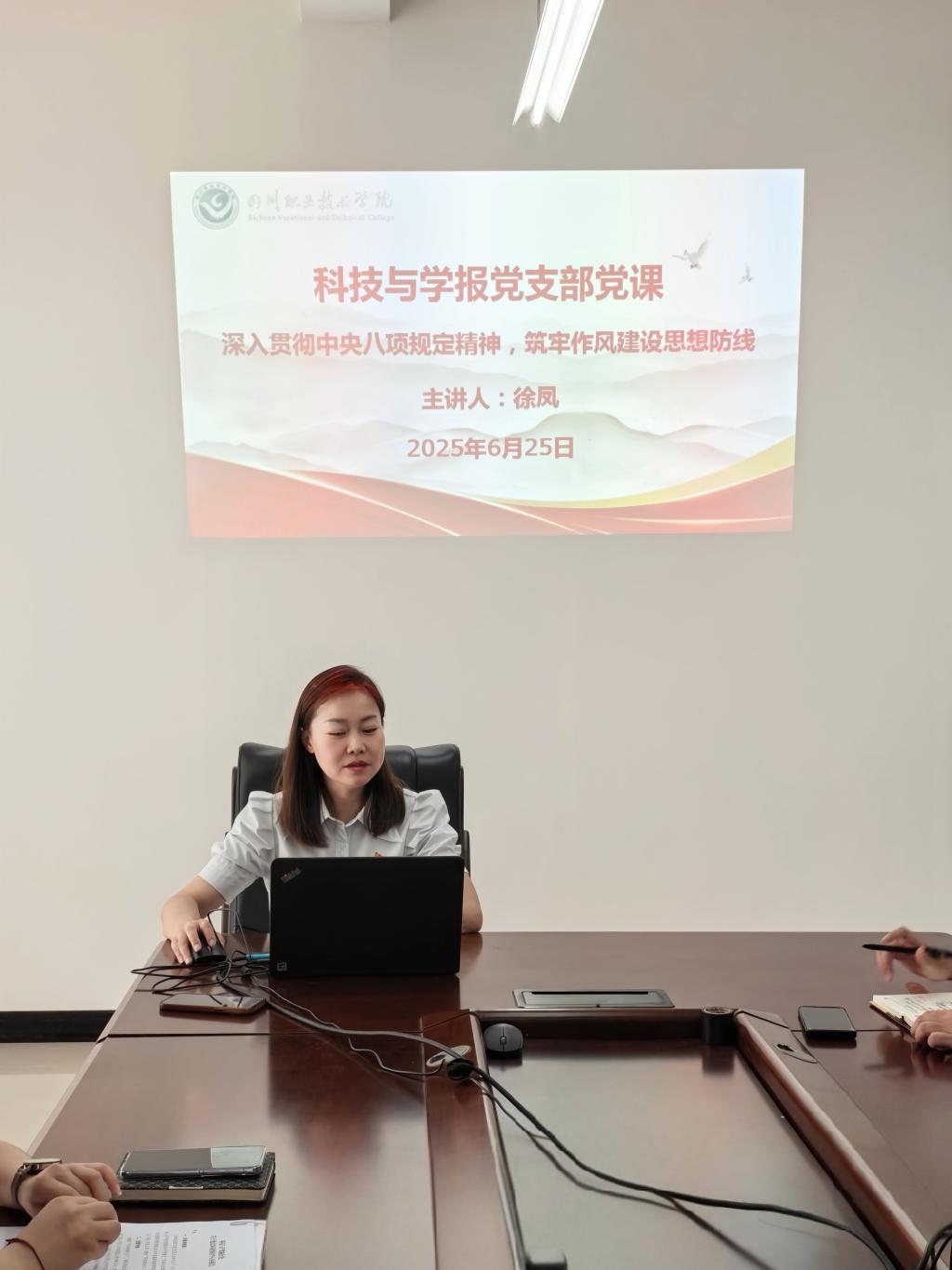 支部书记徐凤同志在党课中系统阐述了中央八项规定精神的深刻内涵,强调作风建设是攻坚战也是持久战。通过剖析“四风”问题的典型案例,如某学报主编违规发放审稿费被处分事件,警示党员干部“微腐败”的危害,要求大家以“严”“实”标准履职尽责。